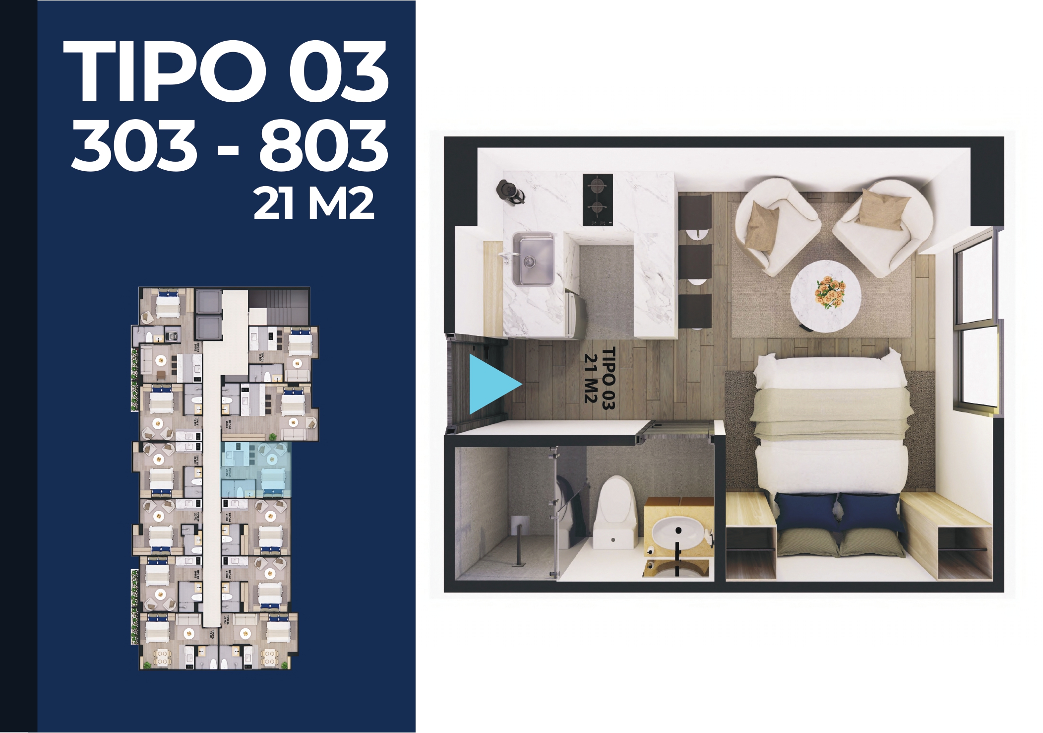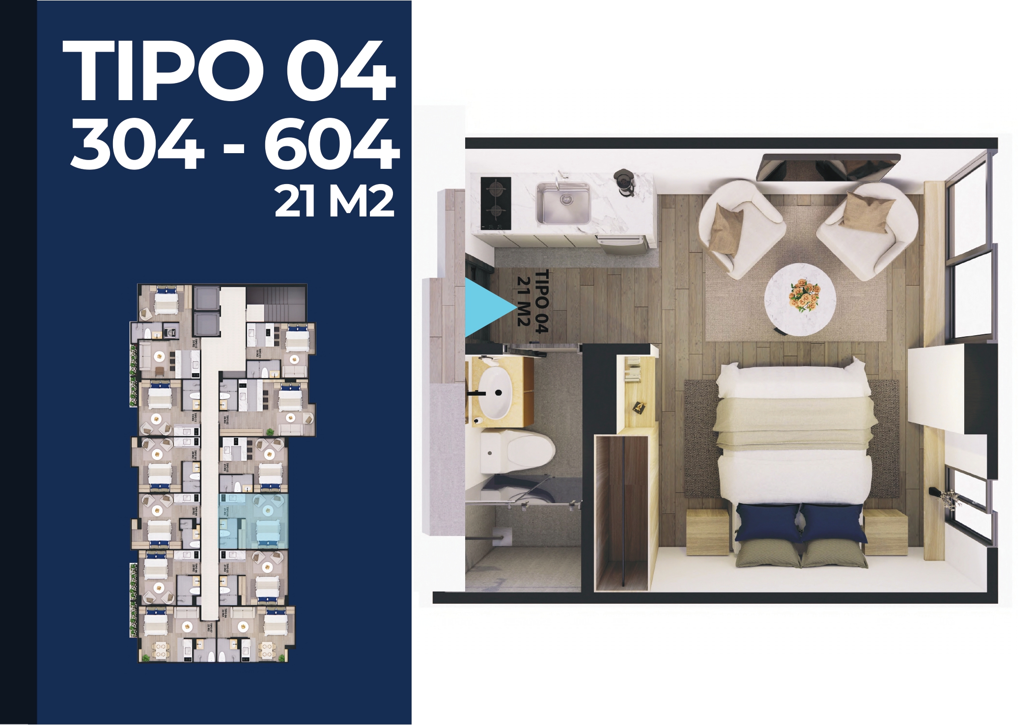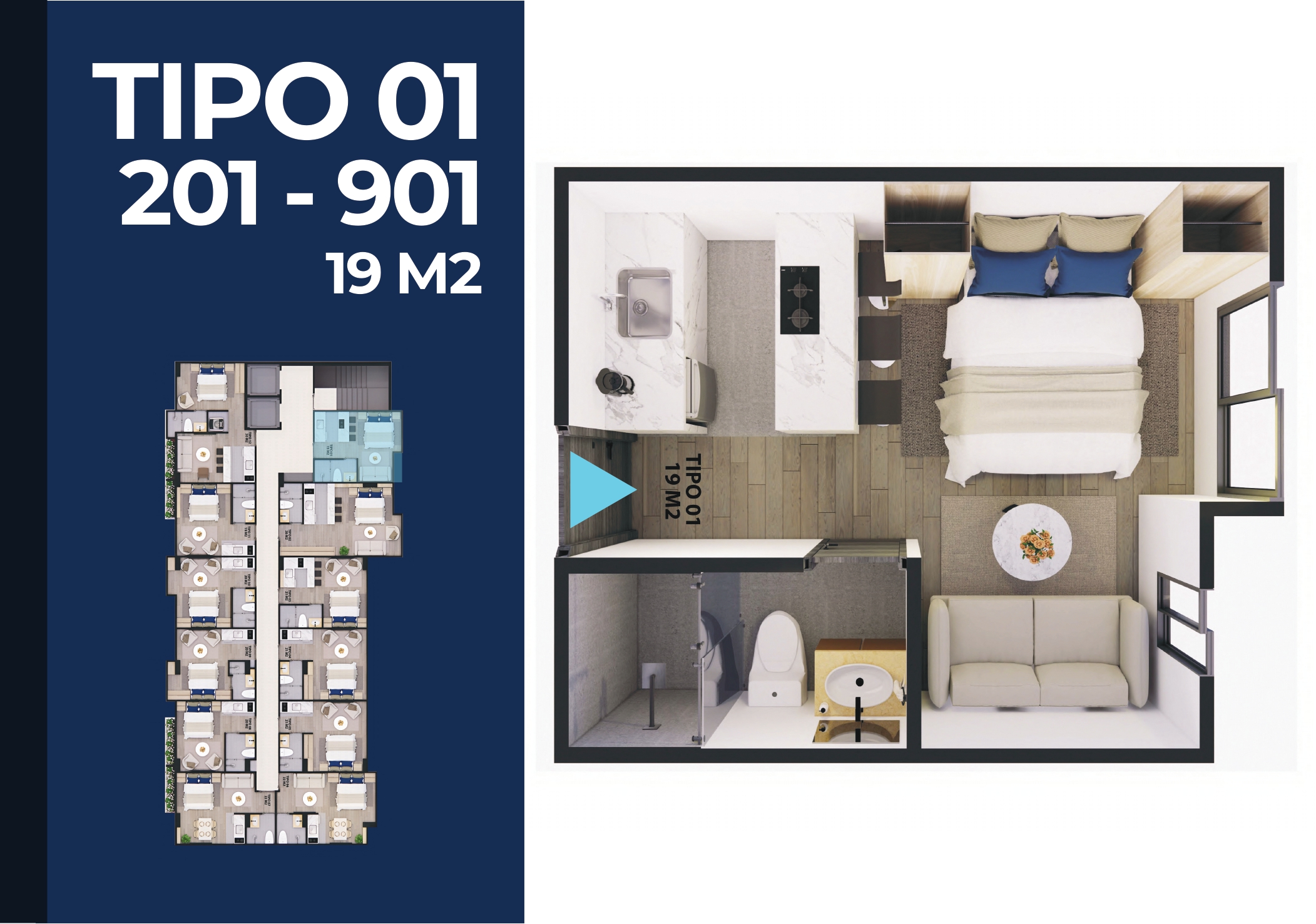 Nuestro proyecto se destaca por ofrecer un estilo de vida moderno y funcional, con áreas ideales para su inversión. Contamos con Apartaestudios desde 19 m2 hasta 30 m2.